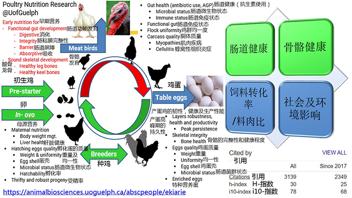 此外,我和其他科研工作者们花费了大量的时间研发有效地解决方案和饲喂策略,使得雏鸡从孵化场进入养殖场后,能健康而茁壮地成长。目前已经有很多研究表明:如果经济动物在幼年期得到很好的照顾和饲喂,它们在成年(出栏时)通常有更好的生产性能。我与我研究团队的科研成果(文献)目前已经有超过3000次引用次数,并且(3000次)其中有70%为近4年的新成果。