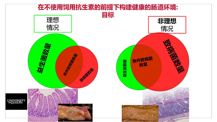 在过去,这些致病菌并不是问题,因为营养师可以对其针对性地使用饲用抗生素,增加益生菌,减少致病菌,从而改变肠道微生物菌群结构,建立健康的肠道微生物群。因此,目前最大的难题是如何在不使用抗生素的前提下建立一个健康而平衡的肠道菌群,而且还需要顾及动物身体健康,营养需要,饲料成本等因素。营养师应该积极寻找合适的解决方案。