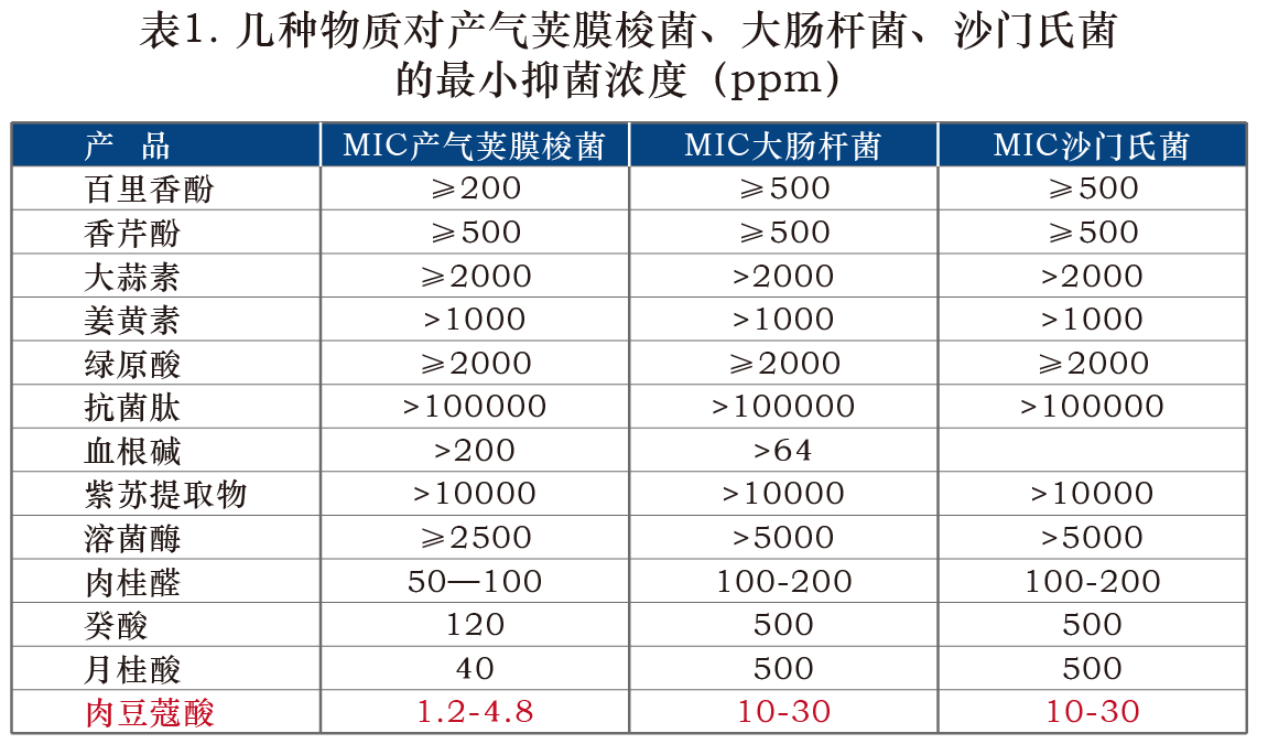 从实验室测定的最小抑菌浓度来看,肉豆蔻酸的抑菌性是最强的。肉桂醛、癸酸、月桂酸等虽然也有一定的抑菌性,但抑菌效果都不如肉豆蔻酸。