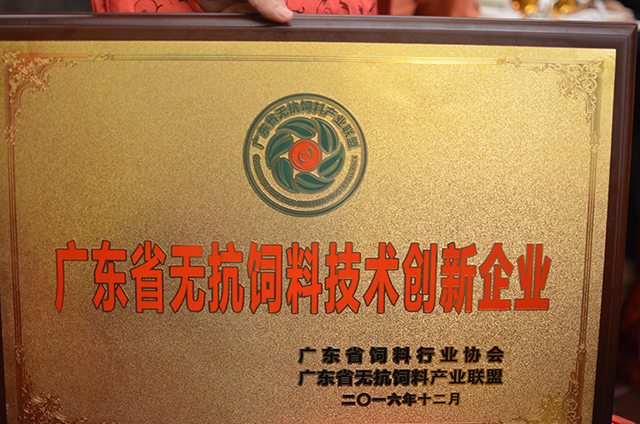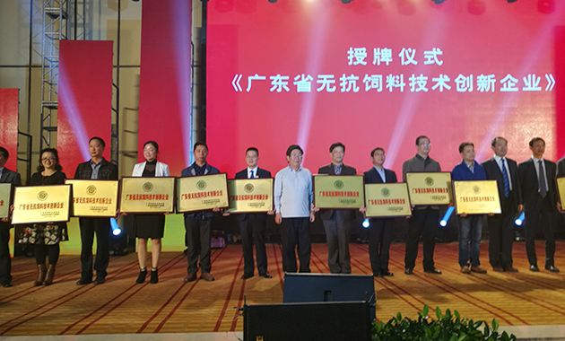 2016年12月10日,一年一度的广东省饲料行业年会在东莞凯景酒店隆重举行。会上,广东省饲料行业协会和广东省无抗饲料产业联盟共同授予了广州英赛特生物技术有限公司为《广东省无抗饲料技术创新企业》,公司副总经理、法人代表覃宗华博士亲自参加了授牌仪式并上台接受了《广东省无抗饲料技术创新企业》牌匾。