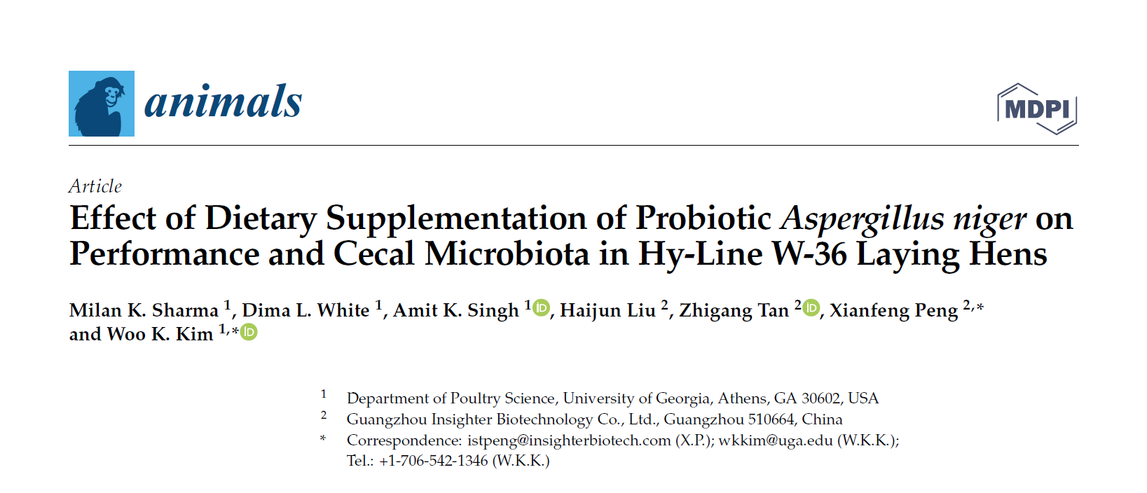 Milan K. Sharma 1, Dima L. White 1, Amit K. Singh 1, Haijun Liu 2, Zhigang Tan 2, Xianfeng Peng 2,* and Woo K. Kim 1,*