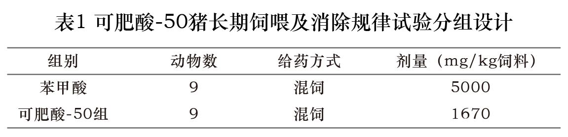 可肥酸-50猪长期饲喂及体内消除规律试验报告