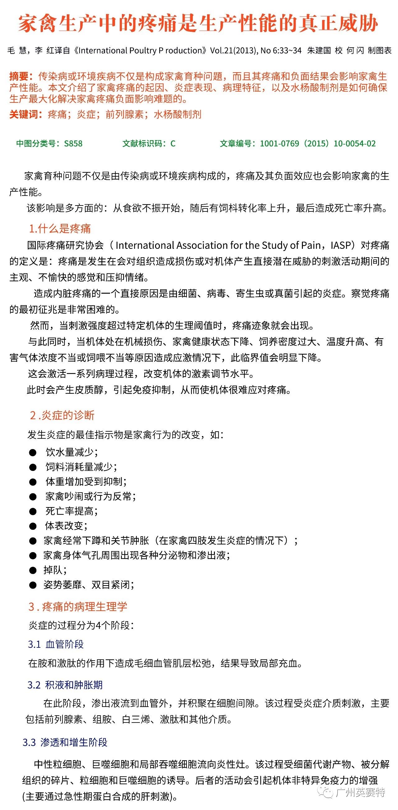 文献 | 家禽生产中的疼痛是生产性能的真正威胁