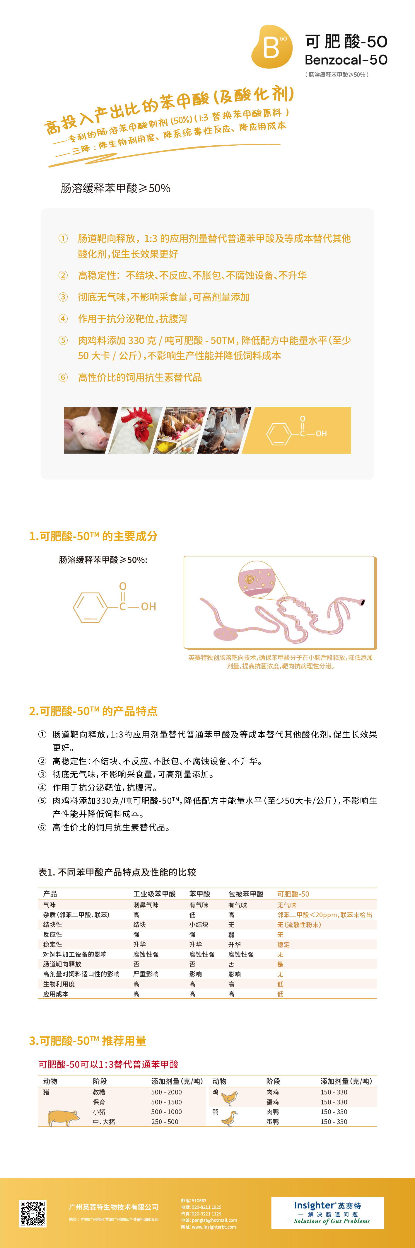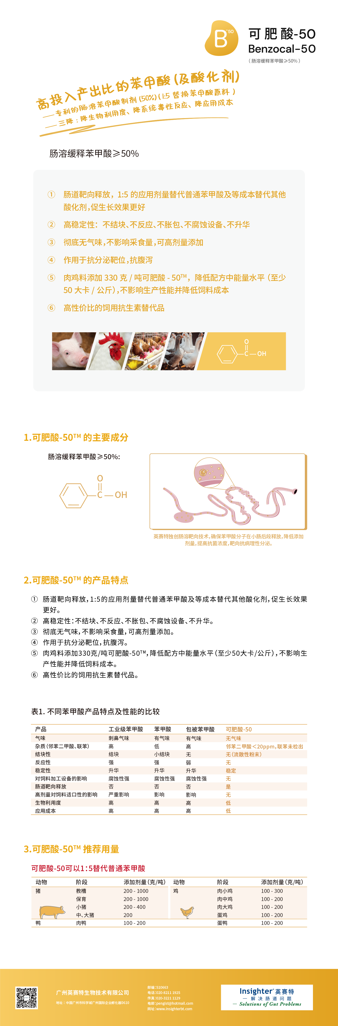 可肥酸-50 | 高投入产出比的苯甲酸 (及酸化剂)(肠溶缓释苯甲酸≥50%)